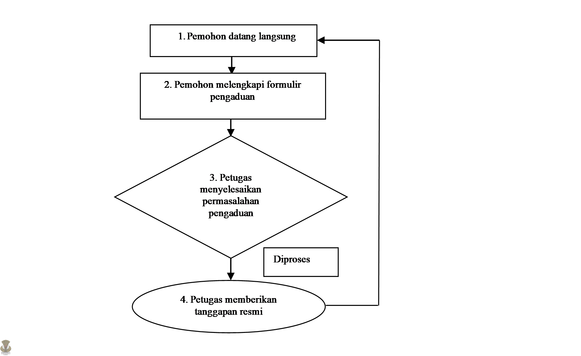 1. Pemohon mengajukan pengaduan dengan hadir di meja pengaduan